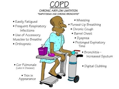 COPD stands for chronic obstructive pulmonary disease. This is the name used to describe a number of conditions including emphysema and chronic bronchitis. Emphysema affects the air sacs in your lungs (alveoli), and chronic bronchitis affects your airways (bronchi). If you have COPD, you might have just one of these conditions, or you might have more than one. COPD is a condition where the airways become inflamed and the air sacs in your lungs are damaged. This causes your airways to become narrower, which makes it harder to breathe in and out. Therefore, people with COPD have breathing difficulties, and this can affect many aspects of your day-today life.