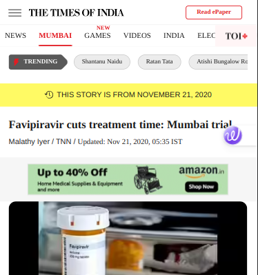 Early treatment with Favipiravir shows faster viral clearance in mild Covid-19 cases: Study November 24, 2020