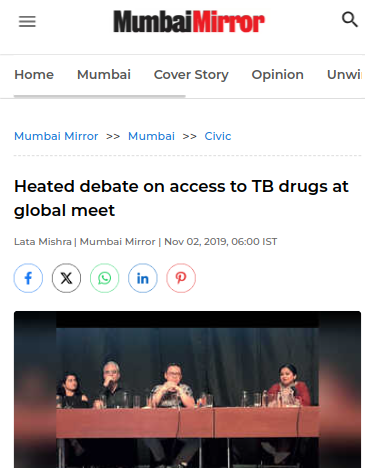 Heated debate on access to TB drugs at global meet Go to actual article You Might Also Like World Tuberculosis Day 2017: Top physician says TB India’s ticking time bomb, seeks PM Modi’s intervention March 24, 2017 The right dose, the right chance: India’s battle with drug-resistant TB March 24, 2016 ‘The Ticking Time Bomb’: A Doctor on Whether TB Can Be Eliminated From India April 8, 2019 Health Global Burden of Disease study: Here are the top 10 killers in India October 25, 2017 India steps up TB fight as fears of drug-resistant strains mount September 5, 2012